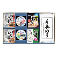 のり弁慶ふりかけ(3g×3)×2、わかめ混ぜご飯若菜(2.8g×3)、シーチキンフレーク(一本釣)、シーチキンマイルドキャノーラ各70g、手巻のり(2切5枚)、減塩おだしぞうすいかに(6.5g×3)×各1【卵、乳、小麦、えび、かに】
